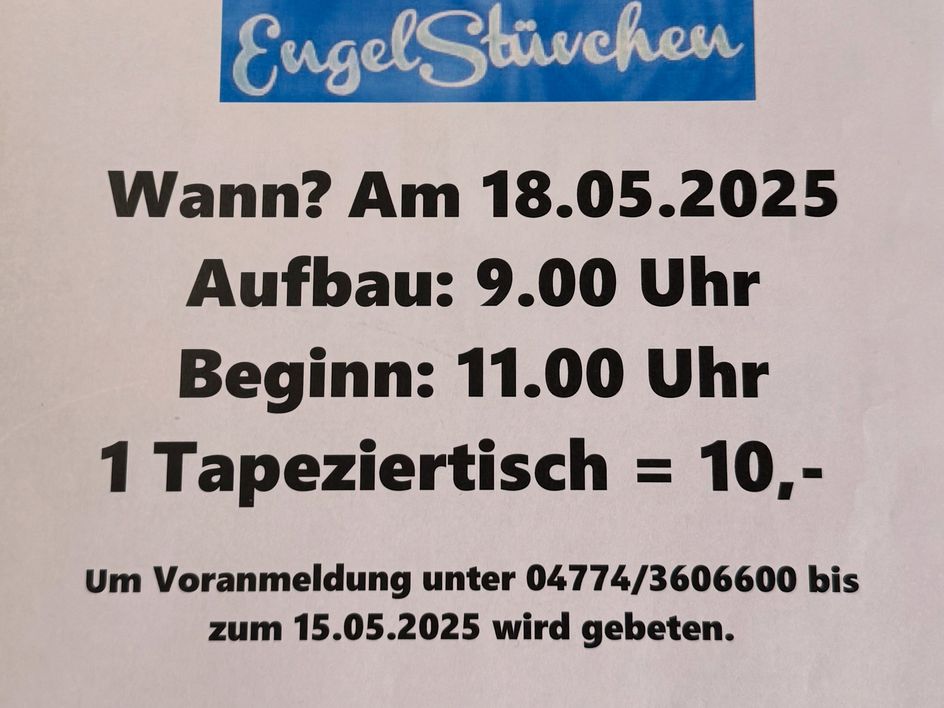Am Sonntag, den 18. Mai 2025 findet ab 11:00 Uhr vor dem EngelStüvchen in Hechthausen wieder der traditionelle Flohmarkt zum Mai Day statt.